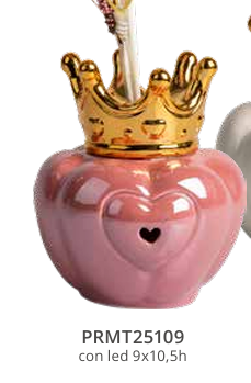 Profumatore corona rosa perlata in porcellana con led e corona oro con box e fazzoletto bianco .